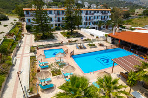 Mooie kamers, netjes en schoon! We hadden een appartement op de bovenste etage. De service is uitstekend: als je om een extra handdoek of iets dergelijks vraagt, wordt dat direct geregeld. Het ontbijt is gevarieerd en goed, met elke dag kleine, nieuwe variaties. Het restaurant is erg goed: het eten is heerlijk en er is veel keuze. Bij het zwembad kun je de hele dag door drankjes bestellen. Eén keer per week is er een Griekse avond met livemuziek van een zanger. Echte minpunten hebben wij niet ervaren. Het meest positieve vonden wij het uitzicht vanaf het restaurantterras en de ontzettend vriendelijke bediening. Wij komen zeker nog eens terug!