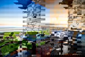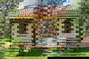 Het uitzicht is fantastisch en binnen een paar minuten kan je afkoelen in de zee. Het strandje is niet geschikt voor te liggen maar dit kan weer voor je huisje of op andere plekken in de tuin.